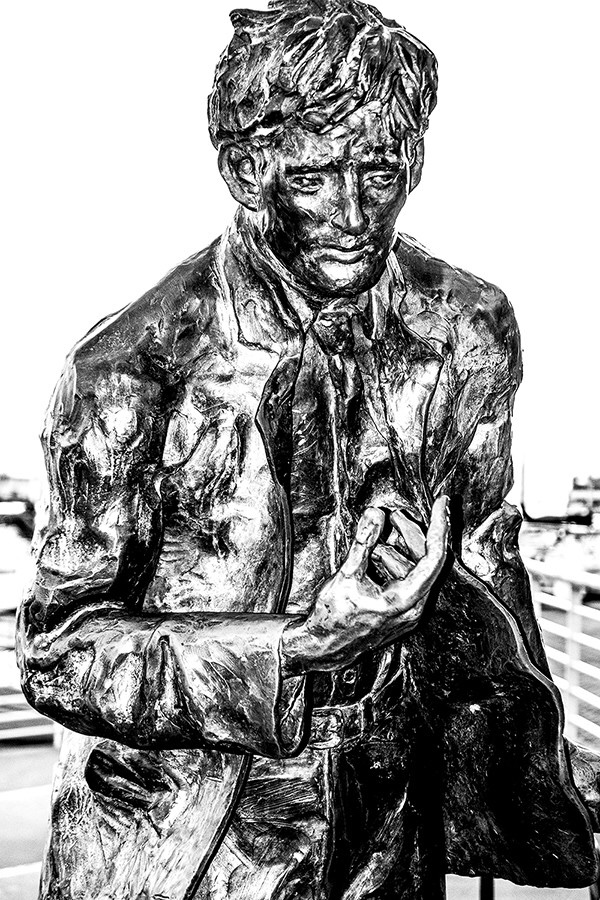 Maybe folks weren’t familiar with the breadth of London’s work beyond seafaring adventures and triumphant dog tales back in 1951 at the time of Jack London Square’s naming, but they certainly should have been aware by the ’90s. Yet the life-size bronze statue of London, sitting at the foot of Broadway overlooking the water, wasn’t erected until 1996.