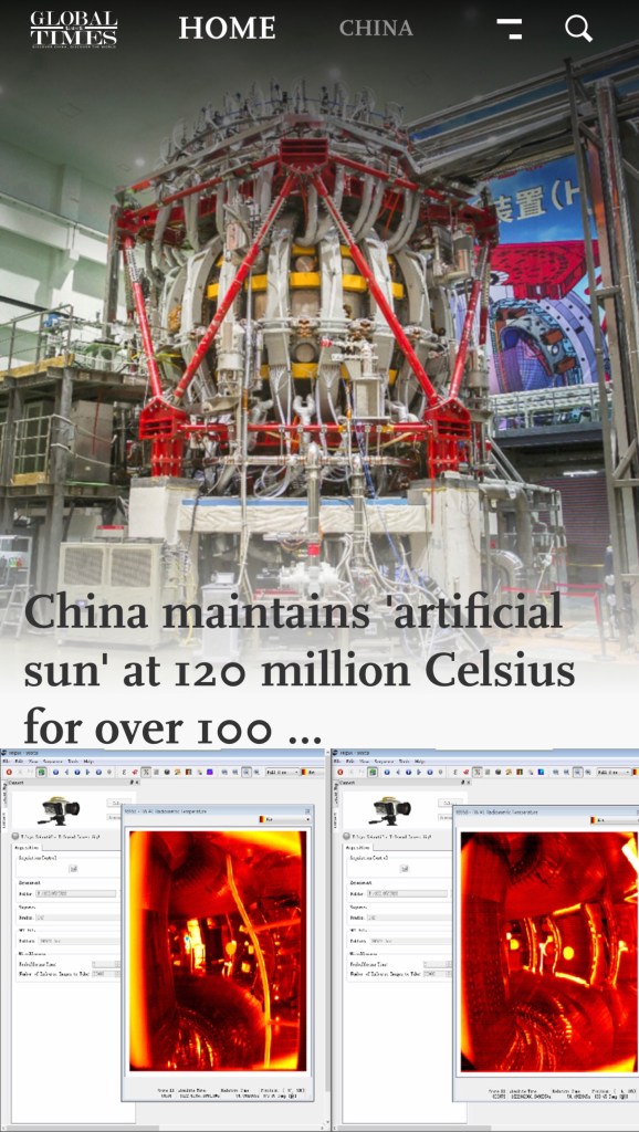 Thermo image of inside of the artificial sun fusion reactor – China broke the record by keeping the Experimental Advanced Superconducting Tokamak (EAST) by achieving plasma temperature at 120 million Celsius for 101 seconds and 160 million Celsius for 20 seconds, a major step toward the test run of the fusion reactor.