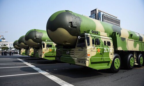 A formation of Dongfeng-41 intercontinental strategic nuclear missiles takes part in a military parade celebrating the 70th anniversary of the founding of the People’s Republic of China in Beijing, capital of China, October 1, 2019.