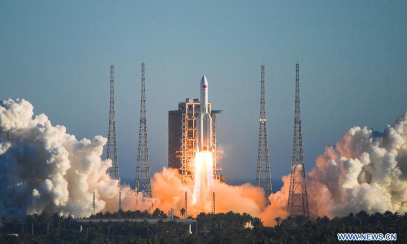 China’s new large carrier rocket Long March-5B blasts off from Wenchang Space Launch Center in south China’s Hainan Province, May 5, 2020, sending the trial version of China’s new-generation manned spaceship and a cargo return capsule for test into space.