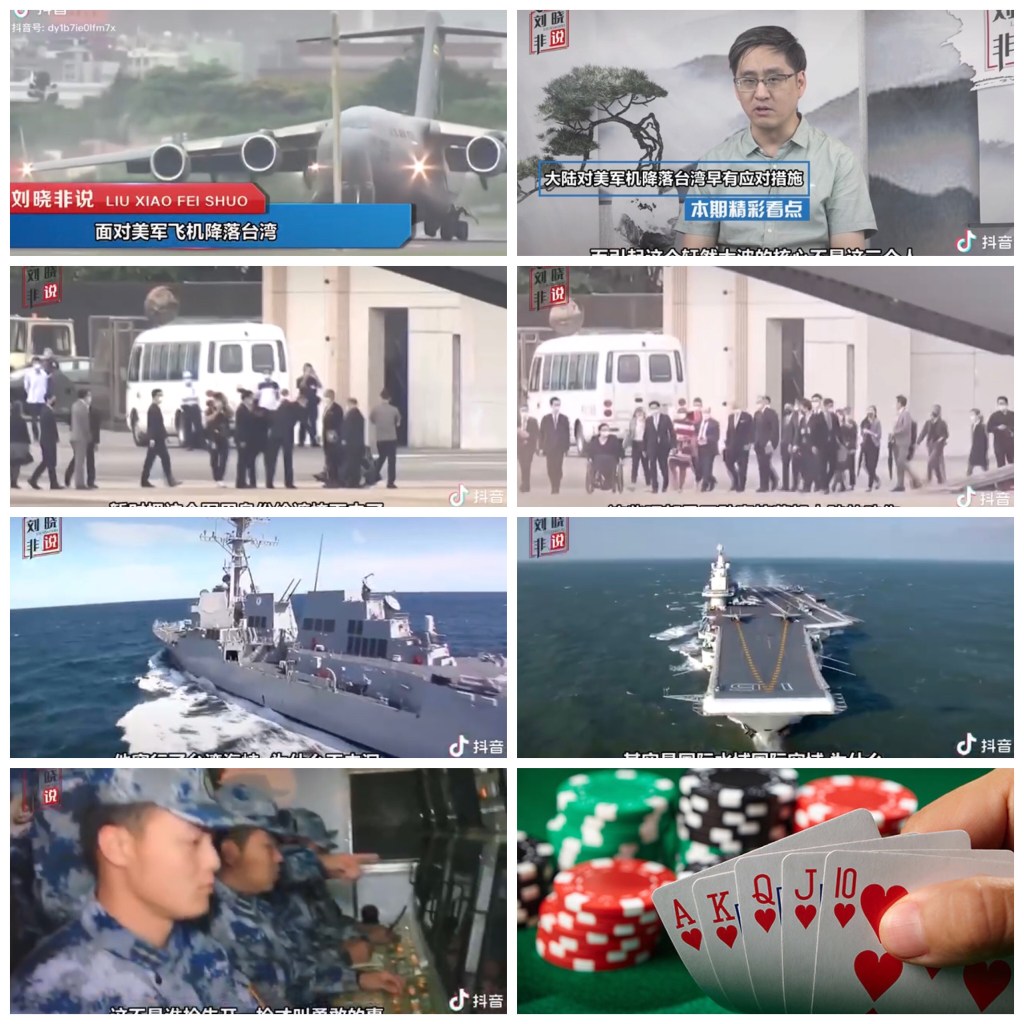 Video: Patriotic is good. But over reacting will play into enemies hand. How China deals with the racist Western Empires is like pokers game. China will show a card or two to wet enemies appetite, but not all. 愛國是好的。 但過度反應會適得其反。 中國如何對付種族主義的西方帝國就像撲克遊戲。 中國會拿出一兩張牌來滿足敵人的胃口,但不是全部。據了解那三位美國議員沒有離開台北機場所以理論上沒有入境. 軍機是民航機代碼進入台北機場 所以理論上不是軍機. 其目的是做秀, 讓一些不了解的人緊張.