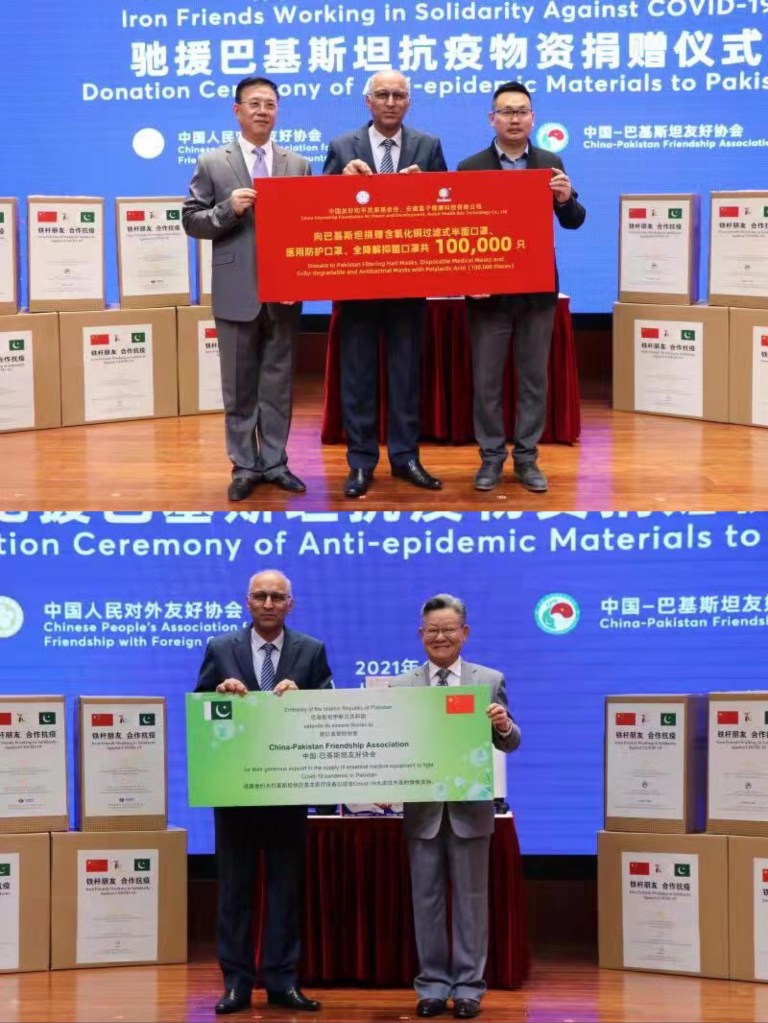 At the donation ceremony, Lin Songtian, president of the Chinese People’s Association for Friendship with Foreign Countries (CPAFFC), said in a speech that as iron-brothers and all-weather strategic partners, Pakistan and China stood together in their fight against the pandemic and extended complete support to each other.