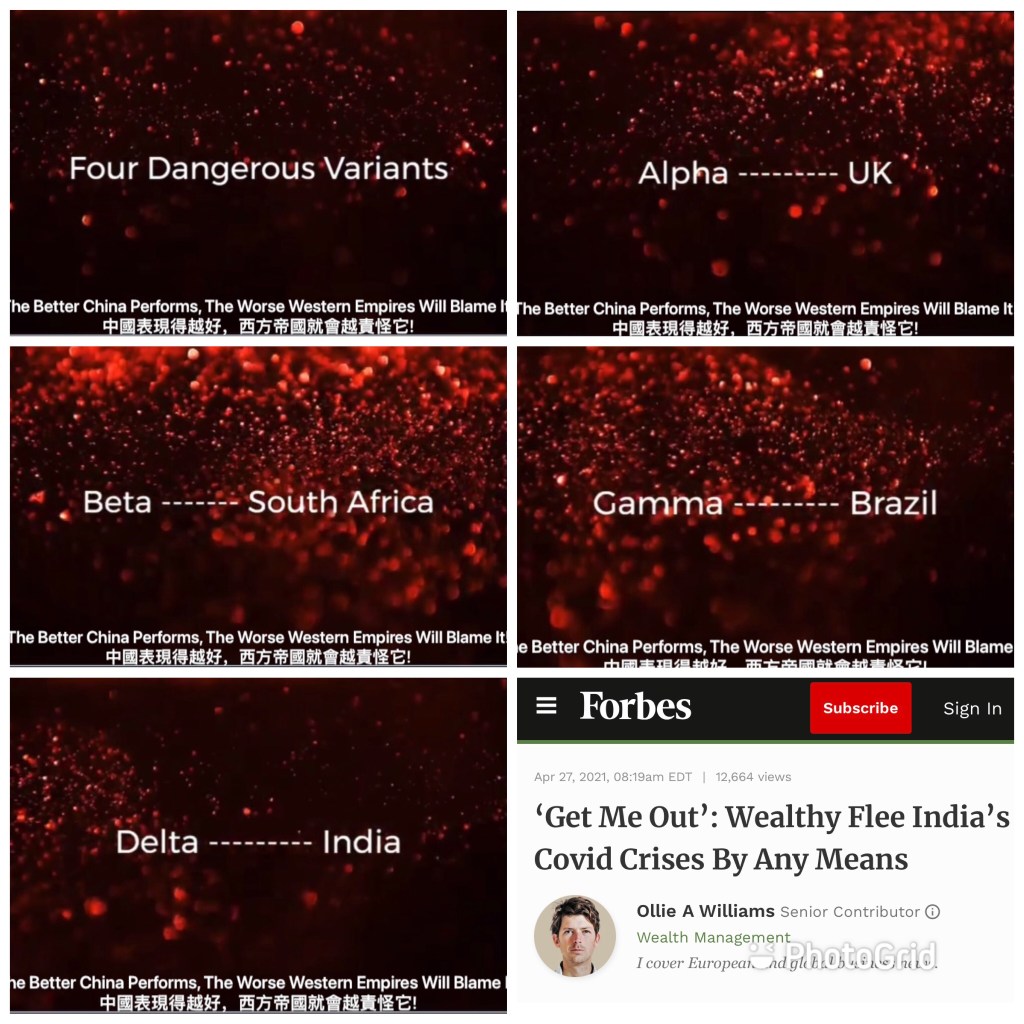 When China discovered any COVID19 cases, it does not matter how few cases it might be like in Guangdong Province, entire population of 20 millions were tested in 3 days. China immediately banned her citizens from traveling to stop COVID19 spreading inside and outside of China. But for India and US, both advocates freedom democracy and human rights placed no travel restrictions potentially spreading COVID19 domestically and internationally. 中國每次發現新冠病毒就像最近在廣東省發現新的Delta新冠病毒時, 全省二千萬人在三天內全部被測試, 同時阻止其公民出遊, 防止新冠病毒在中國境內外傳播. 但印度和美國都提倡所謂自由民主和人權, 沒有限制在國內和國際旅行讓病毒無上限地傳播.