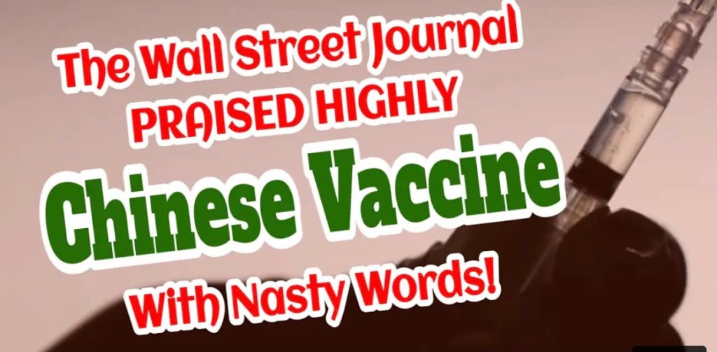 Video: The WSJ protends to be politically correct, and it implies the effectiveness of Sinovac’s covid 19 vaccines to smear China. 《華爾街日報》自稱政治正確,暗示科興新冠病毒疫苗的有效性來抹黑中國.