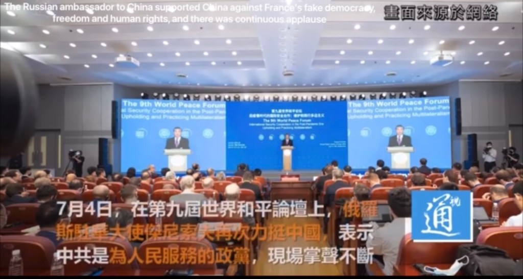 Video: The Russian ambassador to China supported China against France’s fake democracy, freedom and human rights, and there was continuous applause. On July 4, at the 9th World Peace Forum, Russian Ambassador to China Denisov (Andrey Denisov) once again supported China , Indicating that the CCP is a political party serving the people, and there was constant applause on the spot. 俄駐華大使力挺中國怒懟法國的假民主自由人權, 現場掌聲不斷. 7月4日,在第九屆世界和平論壇上,俄羅斯駐華大使傑尼索夫(Andrey Denisov)再次力挺中國,表示中共是為人民服務的政黨,現場掌聲不斷.