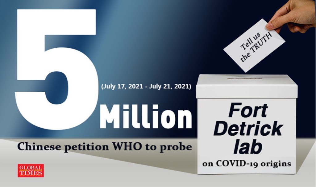 One thought on “Over 5 million Chinese petition WHO to probe Fort Detrick lab on COVID-19 origins by Xu Zihe