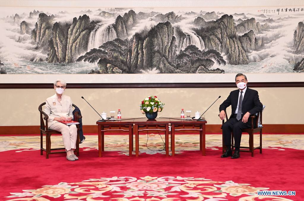 TIANJIN, July 26 (Xinhua) — Chinese State Councilor and Foreign Minister Wang Yi on Monday met with U.S. Deputy Secretary of State Wendy Sherman, urging the United States to drop arrogance and prejudice and steer back to a rational and pragmatic China policy.