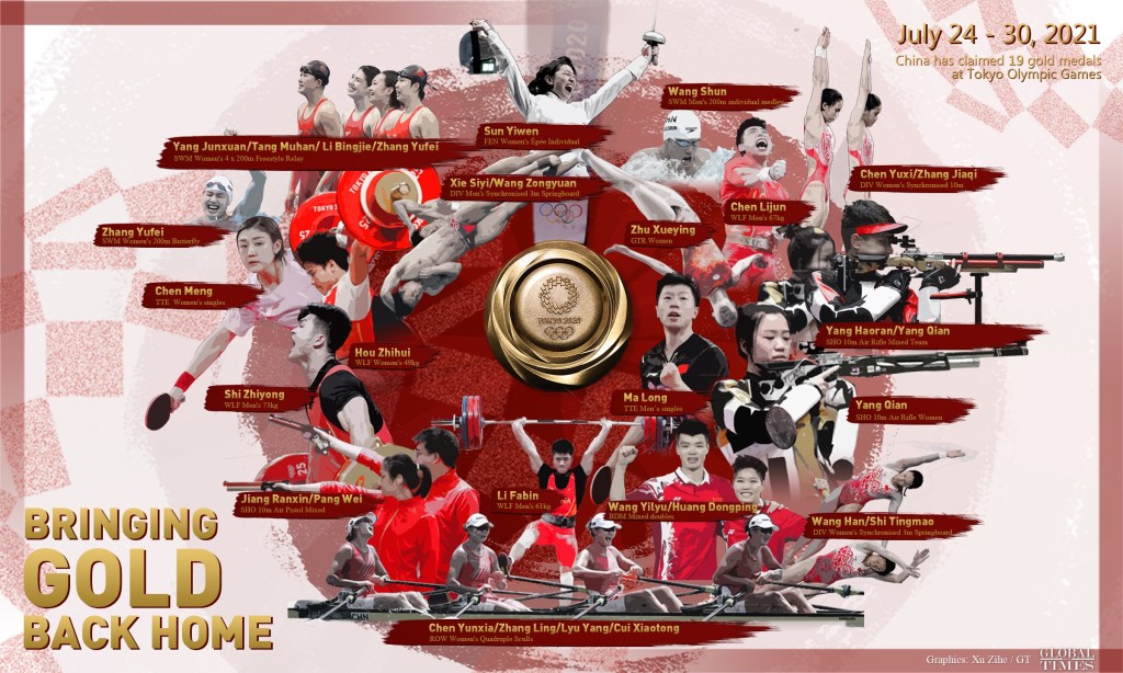 China’s gold moments in Tokyo by Xu Zihe Jul 30 2021 From winning the first gold medal at the Tokyo Olympics to bagging both gold and silver in table tennis, Chinese athletes have delivered a “golden” week at the Olympics. Here are their championship moments.