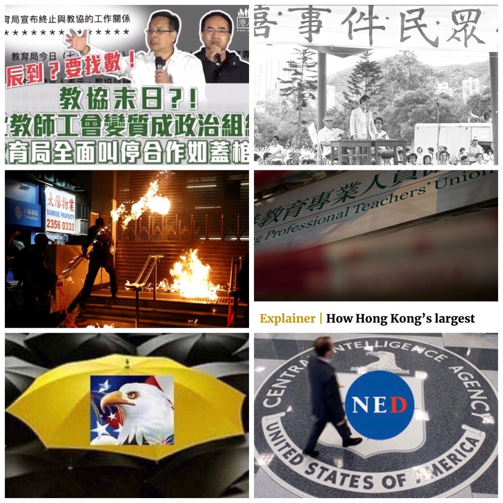 Video: Another US NED/CIA supported organization using embedded foreign agents as teachers in schools throughout Hong Kong to promote subversive activities is removed 另一個美國民主基金會/美國中情局支持的組織在香港各地的學校使用老師作為外國代理人來促進顛覆活動現被鏟除. 時辰到?要找數!教協末日?!批教師工會變質成政治組織、教育局全面叫停合作如蓋棺?終於~教協近年搞政治多過做教育,鼓勵青少年學生上街多過上堂,今日畀教育局叫停所有合作,即等如蓋棺,係咪應有此報?大家點睇?
