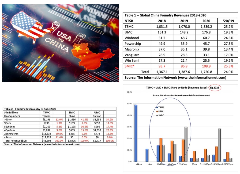 In Table 1, I detail foundry revenues from 2018-2020 for Global China foundries, which are predominantly headquartered in Taiwan. For SMIC, which is Mainland China-based, I converted revenues to New Taiwan Dollars (NTB$).