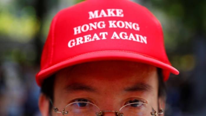 Hong Kong protester wearing hat styled after Donald Trump’s Make America Great campaign. Many of the protesters openly courted U.S. support. [Source: ft.com]