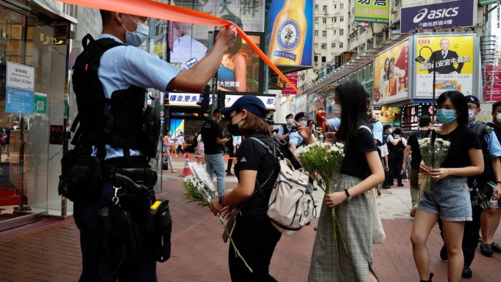 People hold flowers to mourn the death of the assailant in knifing of a Hong Kong police officer. These are the same people who were heralded for over a year in the U.S. mainstream media as champions of human rights and democracy!
