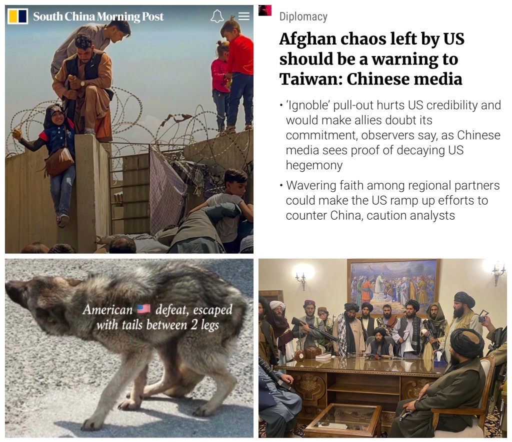 The rapid collapse of the US-backed government in Afghanistan and the chaotic evacuation of Americans from Kabul could not only be “a powerful shock” for Washington’s allies and partners in Asia, but also complicate China’s challenges in its regional rivalry with the US, say observers. 美國支持的阿富汗政府的迅速垮台以及美國人從喀布爾的混亂撤離,不僅可能對華盛頓的亞洲盟友和合作夥伴構成“強烈衝擊”,而且還會使中國在與美國的地區競爭中面臨的挑戰複雜化。 觀察員。