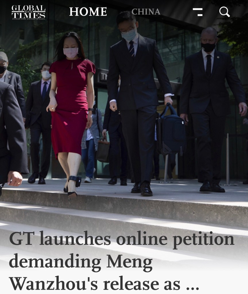 GT launches online petition demanding Meng Wanzhou’s release as her detention approaches 1,000 days. Click here to cast your vote for the release of Meng Wanzhou 環球時報發起網上請願,要求釋放孟晚舟,因為她被拘留了將近 1000 天。 點此為釋放孟晚舟投上一票 http://enapp.globaltimes.cn/article/1231899