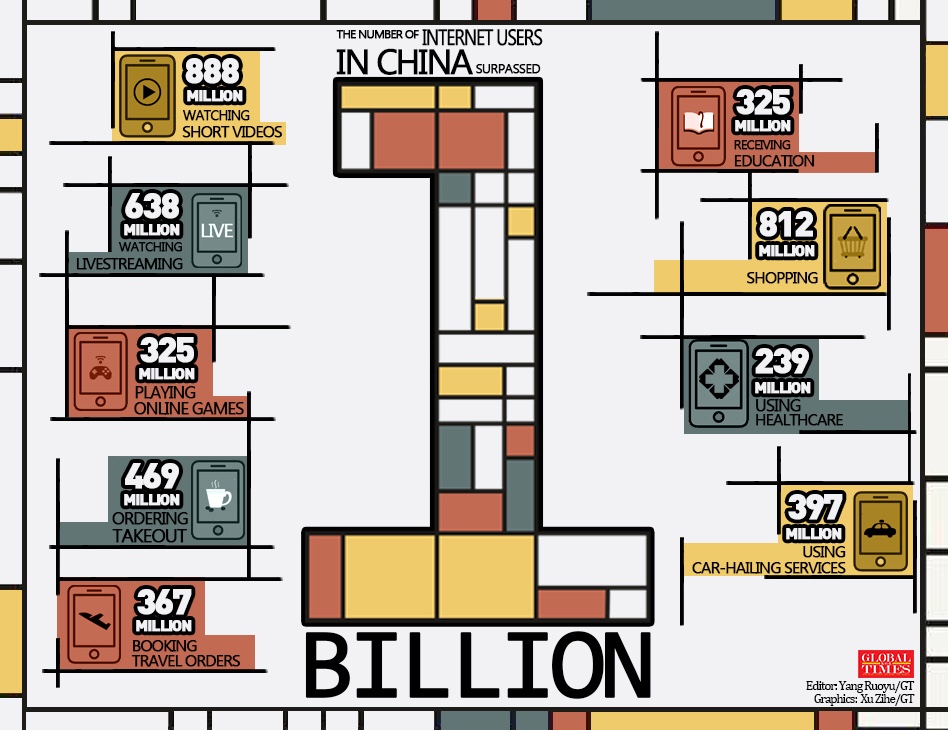The number of internet users in China surpassed 1 BILLION in June 2021. Editor: Yang Ruoyu/GT Graphic: Xu Zihe/GT