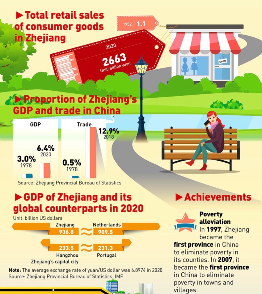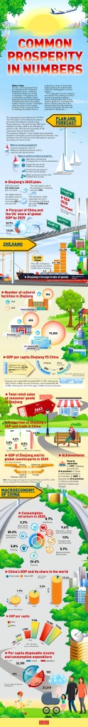 This infographic focuses on figures and indexes that underscore China’s common prosperity roadmap. China’s central authorities in June issued a guideline on building East China’s Zhejiang Province into a demonstration zone for achieving common prosperity. The story was published on September 1.