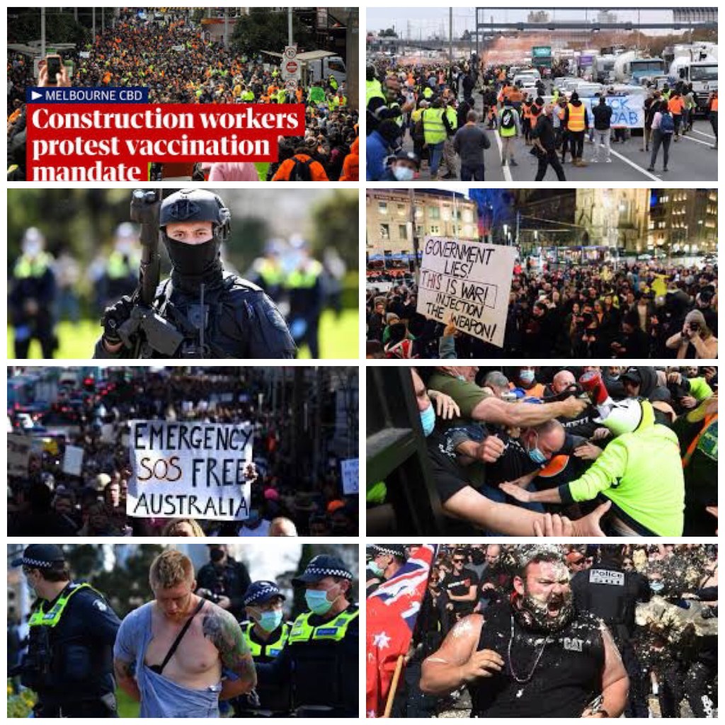 澳大利亞墨爾本反對疫苗授權的抗議者以自由民主人權和法治的名義與警察發生衝突
