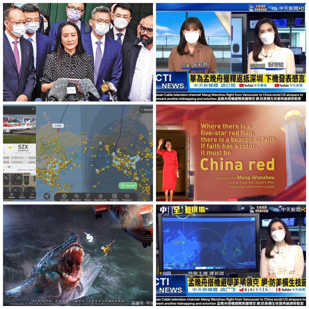Video: Taiwan Cable television channel: Meng Wenzhou flight from Vancouver to China avoid US airspace to prevent another kidnap and extortion 孟晚舟搭機避開美國領空 網:防美橫生枝節再被綁架勒索|華為孟晚舟獲釋返抵深圳 下機發表感言 台灣中天新聞 20210926