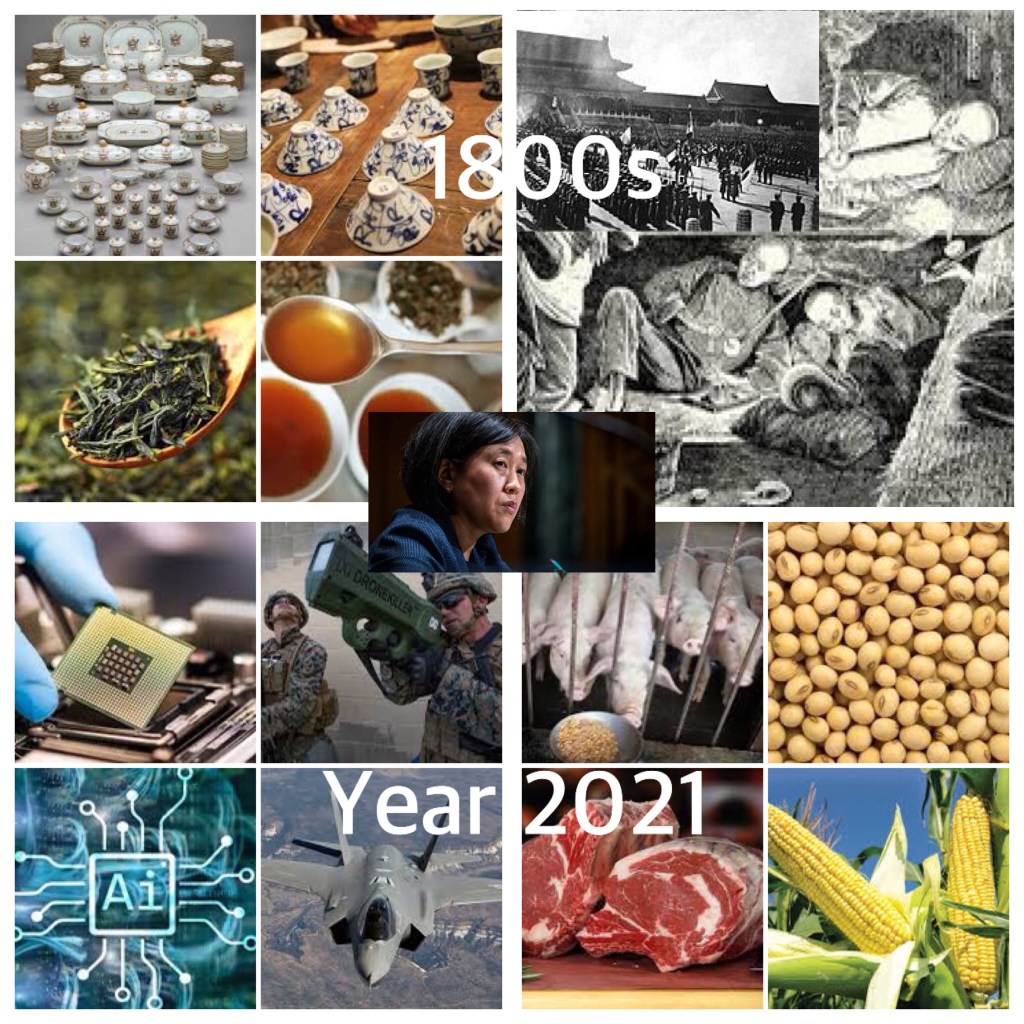 1800s Western Empires back by military sold Opium to China in exchange for Teas & Porcelains; 2021 China wants to buy Computer Chip, Advance Weaponry, AI to balance trade with US, but US won’t sell. Who’s faults? 1800 年代,西方帝國利用強大的軍隊將鴉片強迫賣給中國以換取茶葉和瓷器; 2021 中國想購買計算機芯片、先進武器、人工智能以平衡與美國的貿易,但美國不會出售。誰的錯?