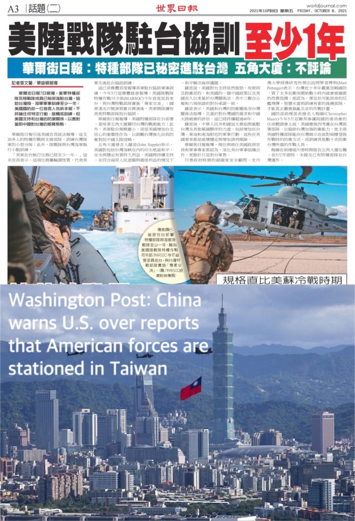 US plan to help China to accelerate the reunification time table! Washington Post: China warns U.S. over reports that American forces are stationed in Taiwan