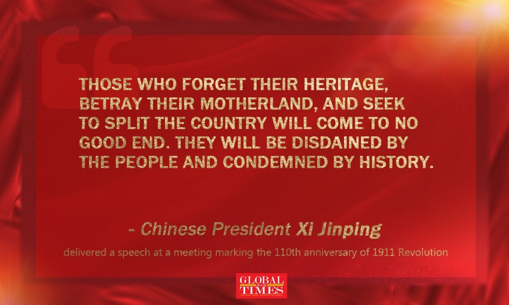 Highlights of Xi’s speech at a meeting marking the 110th anniversary of 1911 Revolution by Xu Zihe Oct 09 2021 Posted byJohnsonwkchoiOctober 11, 2021Posted inUncategorized Highlights of Xi’s speech at a meeting marking the 110th anniversary of 1911 Revolution by Xu Zihe Oct 09 2021 Share this: Share on X (Opens in new window) X Share on Facebook (Opens in new window) Facebook Like Loading...