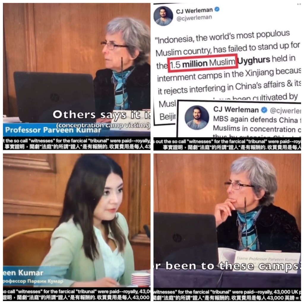 There was a grimly funny moment of cringe! In their sham tribunal they can’t even back-up their own numbers. When asked about the claim of millions of people in the camps, she admits she can only explain “5,567 people in total” Turns out the so call “witnesses” for the farcical “tribunal” were paid–royally, 43,000 UK pounds = US$58,000. 事實證明,鬧劇“法庭”的所謂“證人”是有報酬的. 收買費用是每人43,000 英鎊 = 58,000 美元 https://uyghurtribunal.com/submissions/