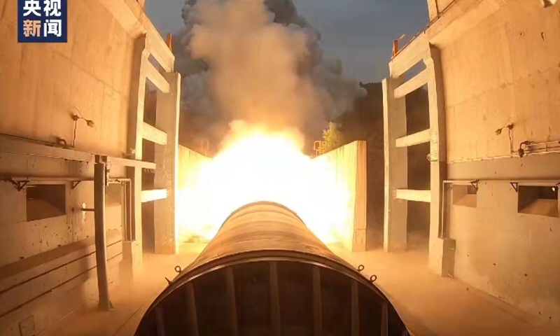 The development of the 500-ton thrust solid engine has entered the engineering application stage, while the landmark test opened up a key technology link for the development of China’s 1,000-ton solid thrust engine, the academy said in a statement sent to the Global Times.