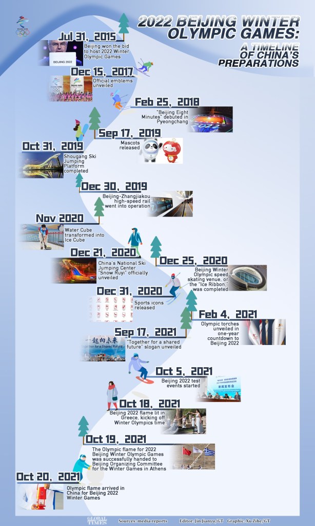 Olympic flame arrives in China for Beijing 2022 Winter Games. A timeline of China’s preparations by Xinhua Oct 19 2021