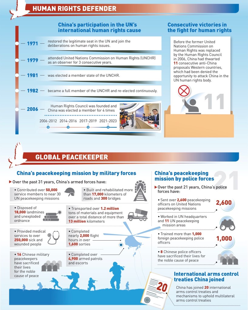 This year marks the 50th anniversary of the restoration of the People’s Republic of China’s lawful seat in the United Nations. In the past half century, China has always been a staunch supporter of UN-centered international order and a major contributor to UN missions. China has mobilized the largest number of standby UN peacekeeping troops, provided great material support to the global COVID-19 fight, contributed the largest part in eradicating world extreme poverty, and in spite of Western smears on China’s human rights, China has actively participated in the work of the UN’s human rights bodies. Check the statistical facts about China’s vigorous promotion of the spirit of multilateralism and its contributions to global development and justice.