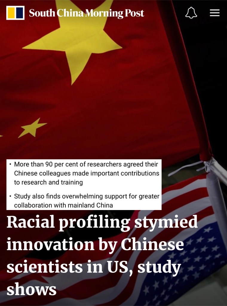JUST ANNOUNCED: New Research Reveals Racial Profiling Among Scientists of Chinese Descent and the Consequences for the U.S. Scientific Community 剛剛宣布:新研究揭示了種族歧視華裔科學家的種族特徵以及對美國科學界的影響.