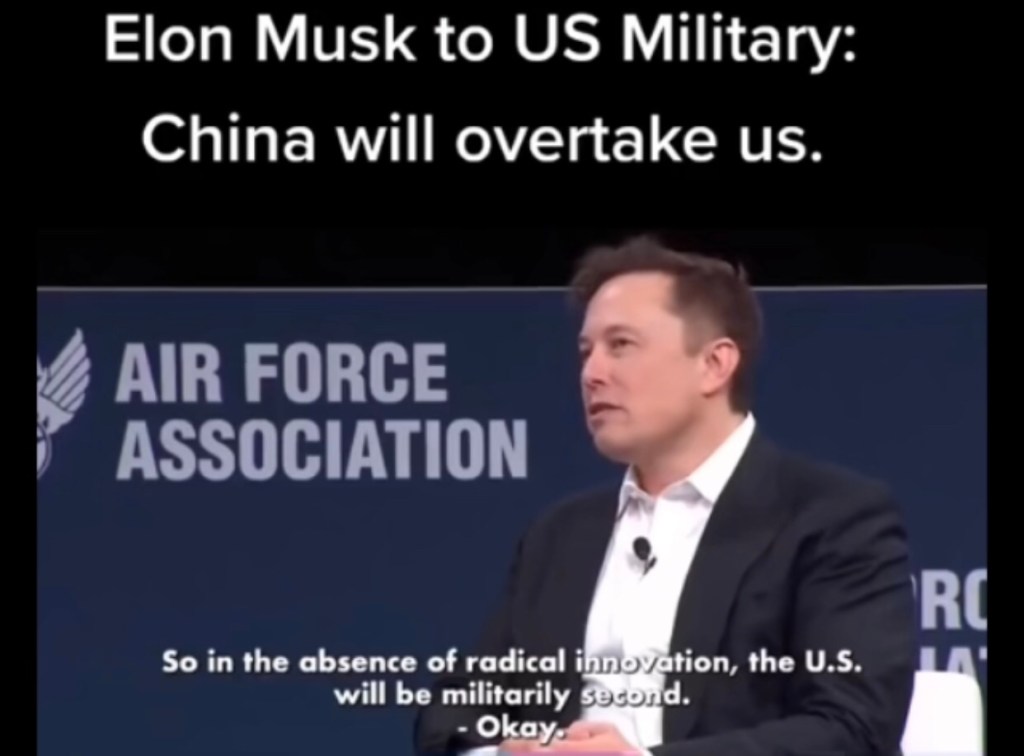 Video: Elon Mask tells US Military: China will overtake us in Military, Green Energy, electric vehicles and more… 埃隆馬斯克告訴美國軍方:中國將在軍事、綠色能源、電動汽車等方面超過我們…