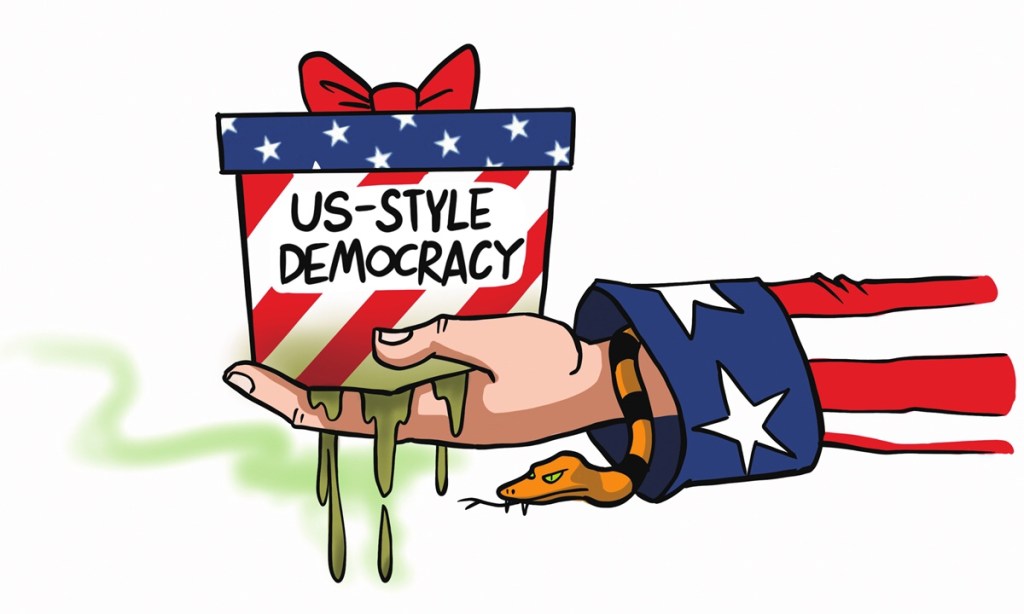 The US has been playing double standards, which shows that it does not care about democracy, liberty or the civil rights it claims at all. What it cares is geopolitical interests.