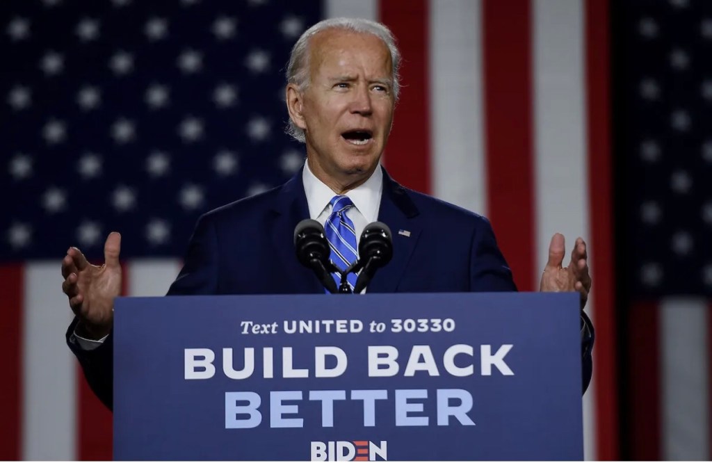 Joe Biden, shown here in July 2020 during his ultimately successful campaign for the US presidency, speaks at a ‘Build Back Better’ clean energy event in Wilmington, Delaware. Photo: AFP / Olivier Douliery