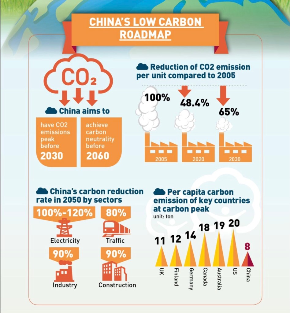 In September 2020, China updated its nationally determined contribution targets which aim to have CO2 emissions peak before 2030 and achieve carbon neutrality before 2060, giving China a gap of about 30 years between the two targets.