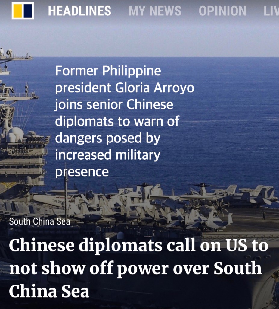 Former Philippine president Gloria Arroyo joins senior Chinese diplomats to warn of dangers posed by increased US military presence at South China Seas