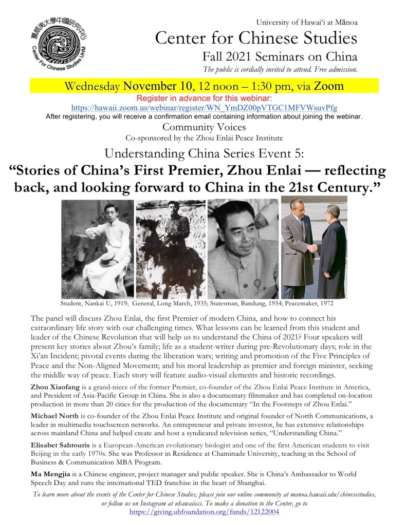 Reminder: UH Wednesday Nov 10th 12noon Hawaii/10:00am SFwebinar “Stories of China’s First Premier, Zhou Enlai — reflecting back, and looking forward to China in the 21st Century” Register: https://hawaii.zoom.us/webinar/register/WN_YmDZ00pVTGC1MFVWsuvPfg