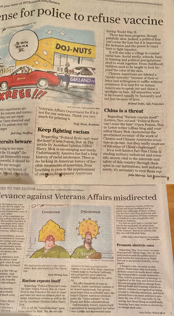 Notice how low the standards are to be published when you China-bash in the racist America. Judge Lillian Sing and Roland Duhn in San Francisco got their opinion pieces published. 請注意,當您在種族主義的美國進行中國抨擊時,發布的標準是多麼低。