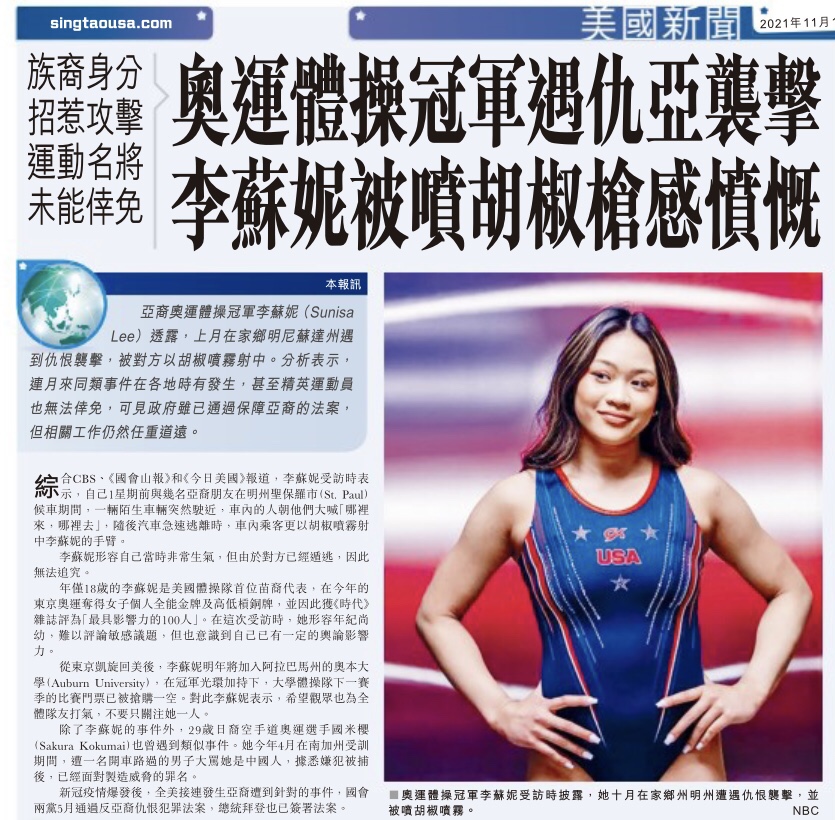 US demonize Asians, Chinese, Chinese Americans and China is working as planned. 美國妖魔化亞洲人、中國人、美籍華人,中國正在按計劃運作. Sunni Lee, got 3 Olympic gold medals in Tokyo, reveals she was target of racist attack, By Ryan Gaydos – Fox News