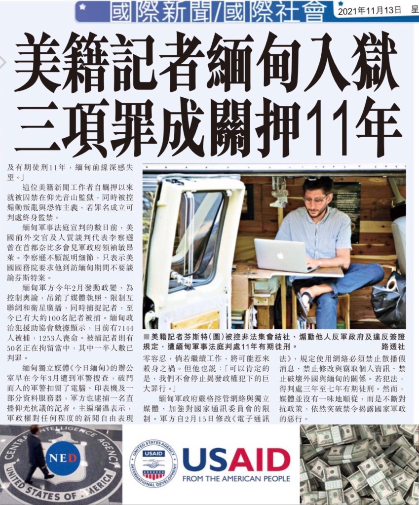 Another NED’s Color Revolution regime change agent got caught in Myanmar jailed for 11 years. Posted byJohnsonwkchoiNovember 13, 2021Posted inUncategorized Another NED’s Color Revolution regime change agent got caught in Myanmar jailed for 11 years. Share this: Share on X (Opens in new window) X Share on Facebook (Opens in new window) Facebook Like Loading...