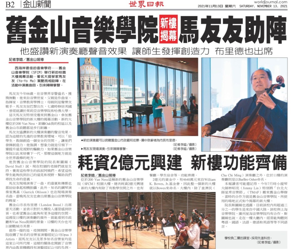 San Francisco Conservatory of Music – A closer look inside SFCM’s new US$200 millions 165 thousand square feet building in the heart of SF’s art scene. SFCM Inaugurates the Bowes Center with Mayor London Breed and Yo-Yo Ma