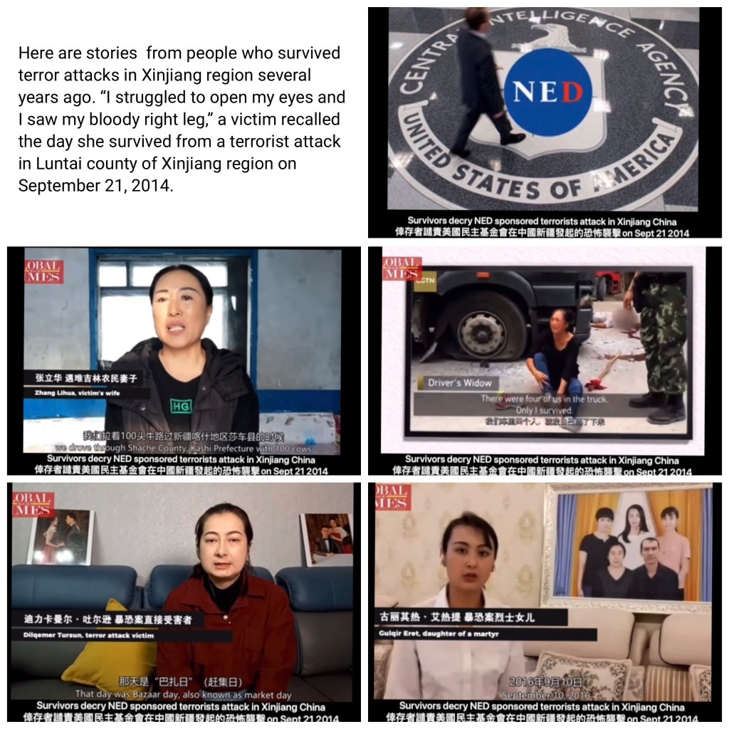 Video: Survivors decry NED sponsored terrorists attack in Xinjiang China 倖存者譴責美國民主基金會在中國新疆發起的恐怖襲擊Sept 21 2014