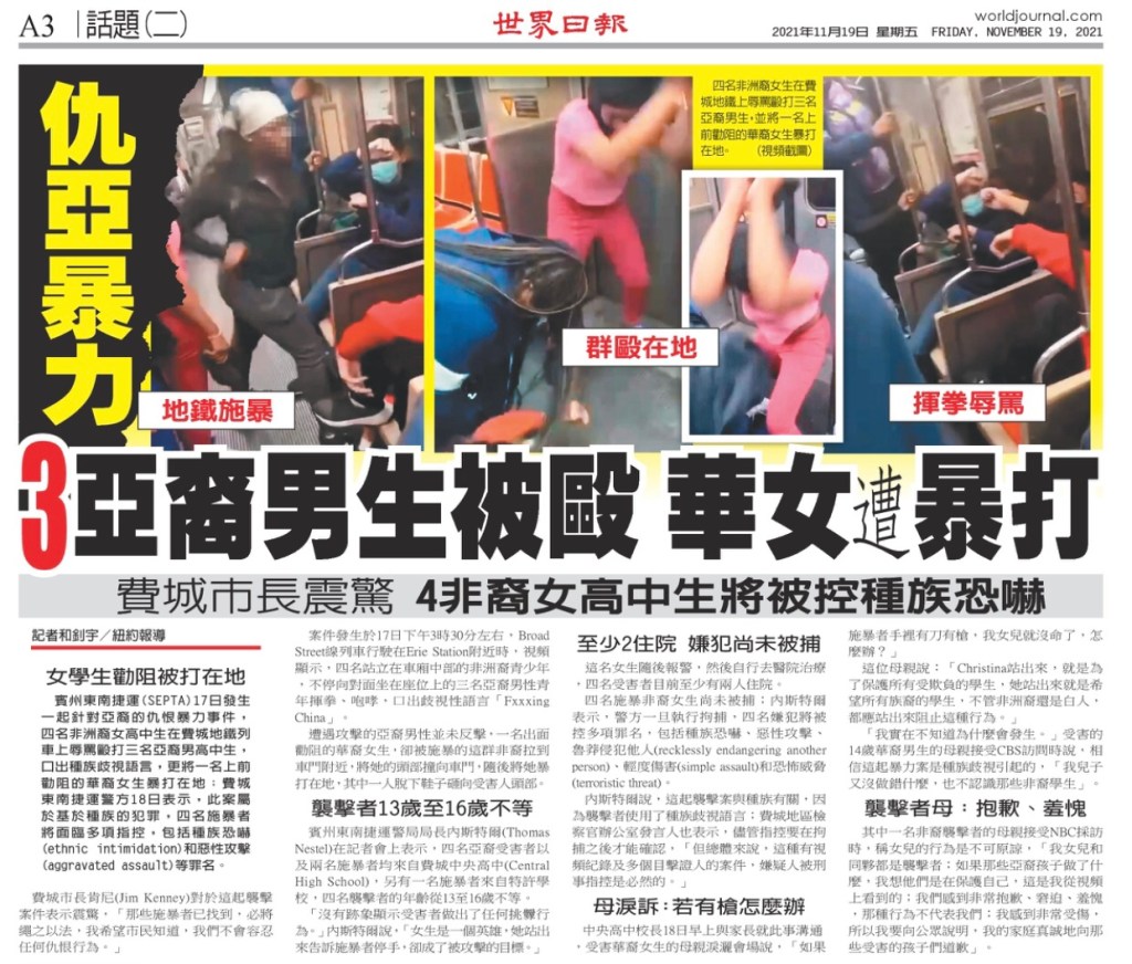 Racial attacked – Chinese got beaten up in US subway car again. What an irony that China has 56 races lives peacefully. Asians, especially Chinese need to think is it worth risking your lives daily in US! 種族攻擊 – 中國人又在美國地鐵裡被打了。 具有諷刺意味的是,中國有56個種族和平地生活。 亞洲人, 尤其是中國人需要考慮每天在美國冒生命危險是否值得!