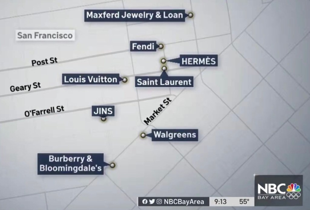 Lawless in the name of freedoms democracy human rights and rules of laws – LV store at Union Square SF got robbed again tonight 11-19-21