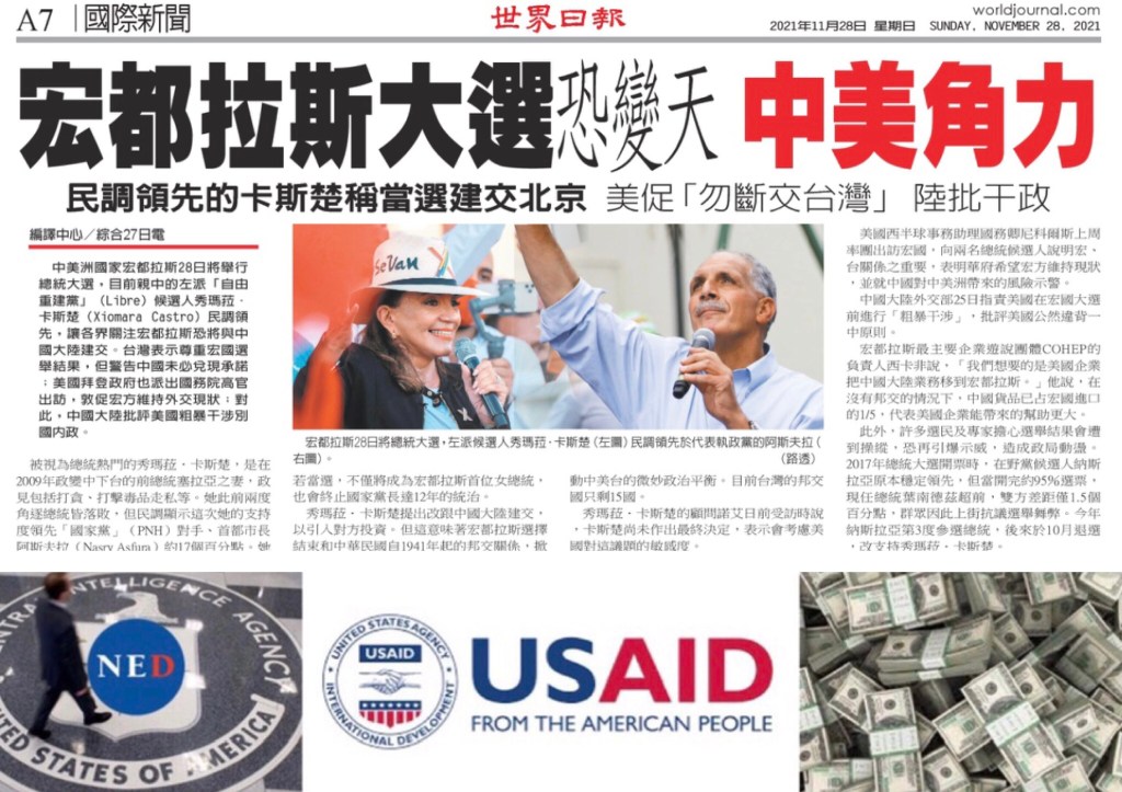 Honduras election front runner Xiomara Castro pledge to break ties with Taiwan Province, established ties with Beijing. NED and English Tsai are working behind the scene just like the riots at Solomon Islands. 洪都拉斯選舉領跑者休馬拉·卡斯特羅承諾與台灣省斷交,與北京建立關係。 就像所羅門群島的騷亂一樣, 美國民主基金會和台灣省政府在幕後操作.