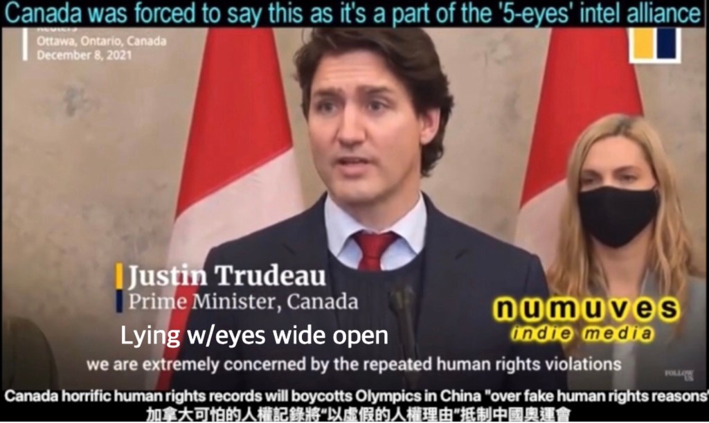 As Canada is a member of the once secret 5-eyes intelligence alliance (US, UK, Canada, Australia and New Zealand) it needs to create certain media spectacles to attack their “enemies”. Listen to the PM declare a boycott of the Beijing games “over human rights” while his gov’t continues its genocide on our First Nations.