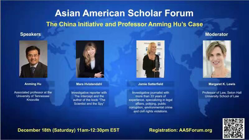 When people are following the high-profile trial of Charles Lieber, former Chair of the Department of Chemistry and Chemical Biology at Harvard University, Anming Hu will share his personal experience as the first academic tried under the “China Initiative” starting at 11 am ET/8 am PT on Sat. December 18, https://aasforum.org/.