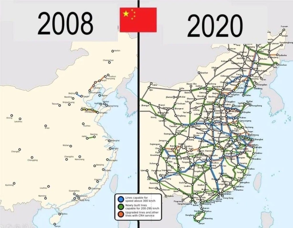 China’s high speed rail Posted byJohnsonwkchoiDecember 22, 2021Posted inUncategorized Simply incredible!: China’s 🇨🇳 high speed rail 2008 vs 2020. 70% of all high speed rail in the World. Share this: Share on X (Opens in new window) X Share on Facebook (Opens in new window) Facebook Like Loading...