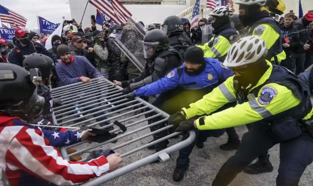 Robert Reich: Beware the big lie, big anger and big money. Rioters try to break through a police barrier at the Capitol in Washington on 6 January.