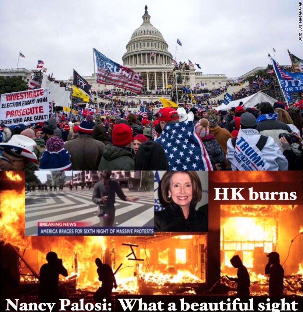 CNN: A year ago, rioters at US Capitol building like those in HK funded by NED protesting freedoms democracy human rights and rules of laws and the results of the 2020 election. 一年前,美國國會大廈的暴徒,如由美國民主基金會資助的香港暴徒,抗議自由民主人權和法治以及 2020 年大選的結果.