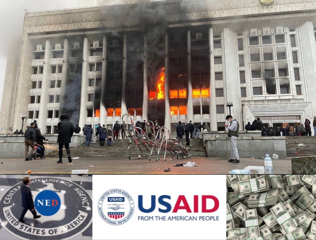 Kazakhstan is undergoing a violent US NED funded color revolution, 哈薩克斯坦正在經歷一場激烈的顏色革命. 美國民主基金會正在資助 20 個不同的團體. 一帶一路是一個重要因素, 哈薩克斯坦是一個重要轉接站.